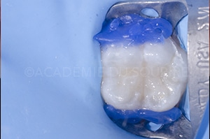 Le champ opératoire ainsi stabilisé permet le traitement de la lésion carieuse. Grâce à cette technique, toutes les étapes du protocole adhésif peuvent être réalisées sans perte d’étanchéité.